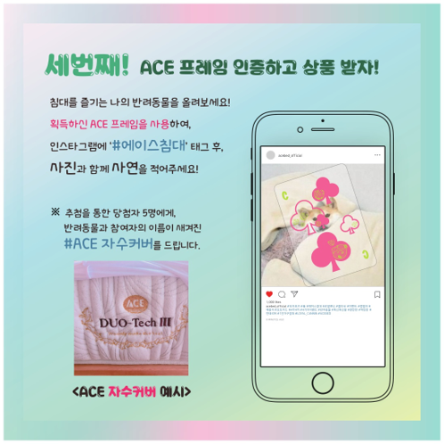 에이스 침대의 대중성을 고려하여 반려동물과 주인에게 의미있고 도움이 되는 제품을 콜라보하며 참여형 이벤트를 제작하였다. 폭신폭신하며 따뜻한 에이스 침대라는 주제를 담아 광고는 다음과 같은 컨셉으로 진행된다.